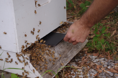 We inserted the traps into the opening of the hive, and I will check them in a few days.