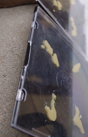 of boric acid, and 4 tablespoons of Crisco and only enough soy flour to mix into pie dough consistences, (we ground soybeans in our super-blender since we did not have soy flour on hand) via http://beehivejournal.blogspot.com/2009/02/cd-case-small-hive-beetle-trap.html